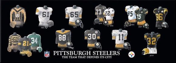 Over the last 25 years a team of amazing artists and I created some great NFL + MLB + NHL + US college football + CFL posters that celebrate the history of team uniforms. Maybe you’ve seen these posters: